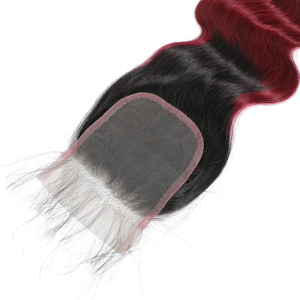 1B99J Body Wave Bundles With Closure Brazilian Human Hair Weave 4x4 Lace Closure 3/4 Bundles Remy Hair Extensions