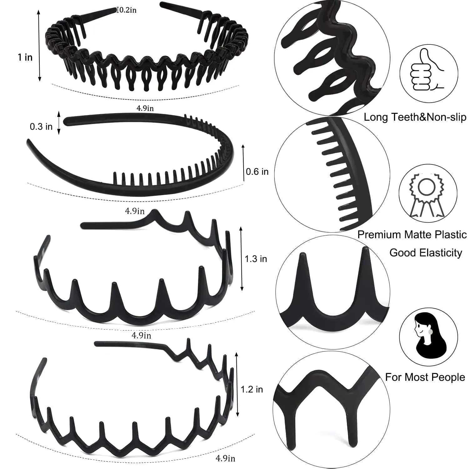 Elevate your style with the 8 PCS Fashion No Slip Effortless Plastic Headbands with Teeth Comb Black Skinny Hair Accessories Bands. This versatile set includes 8 sleek, matte black headbands designed for both men and women, ensuring that your hairstyle remains effortlessly chic no matter the occasion.