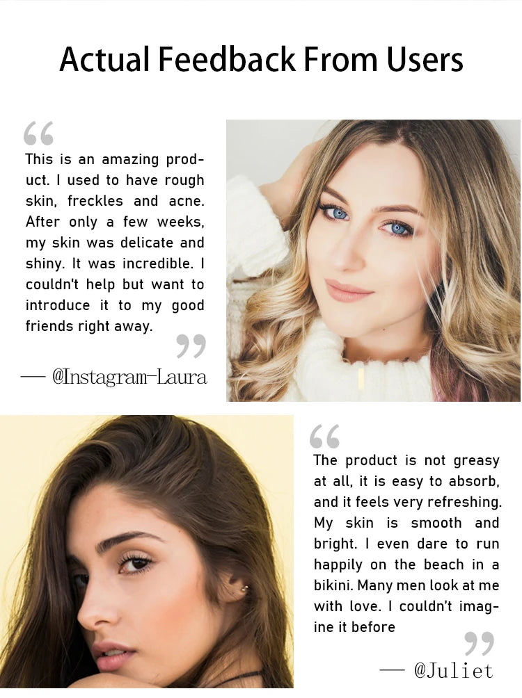 - Whitening Effect: Achieve a brighter complexion with our unique whitening agents that target uneven skin tone.