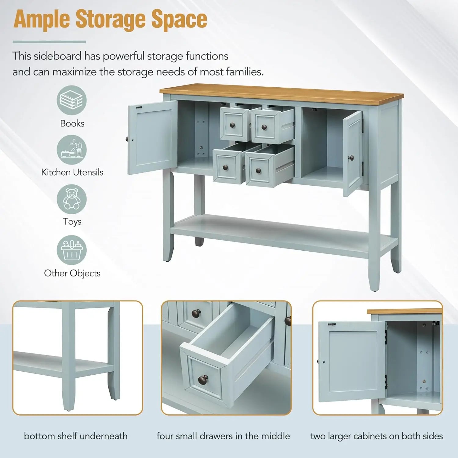 Elevate your living environment today with this elegant, functional console table sideboard. Add it to your cart now and enjoy a perfect blend of style, storage, and durability in your home decor collection.