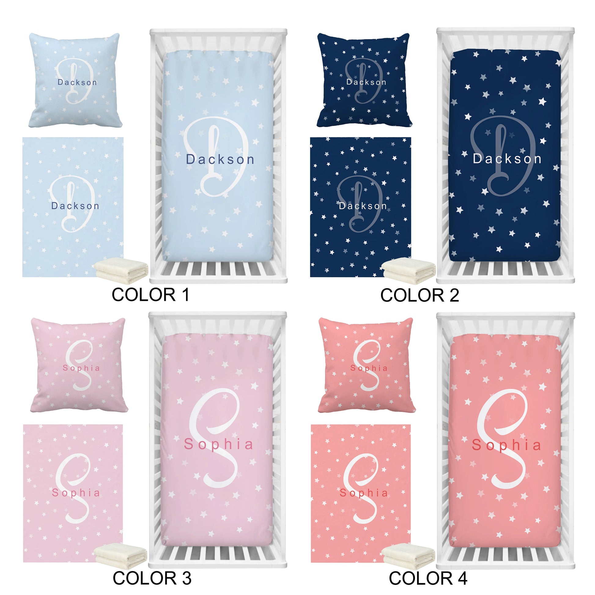 Transform your little one's nursery into a cozy haven with the LVYZIHO 4 Color Star Pattern Personalized Name And Monogram Bedding Set. This delightful Personalized Crib Bedding Set is the perfect combination of style and functionality, making it an ideal gift for baby showers and new parents alike.