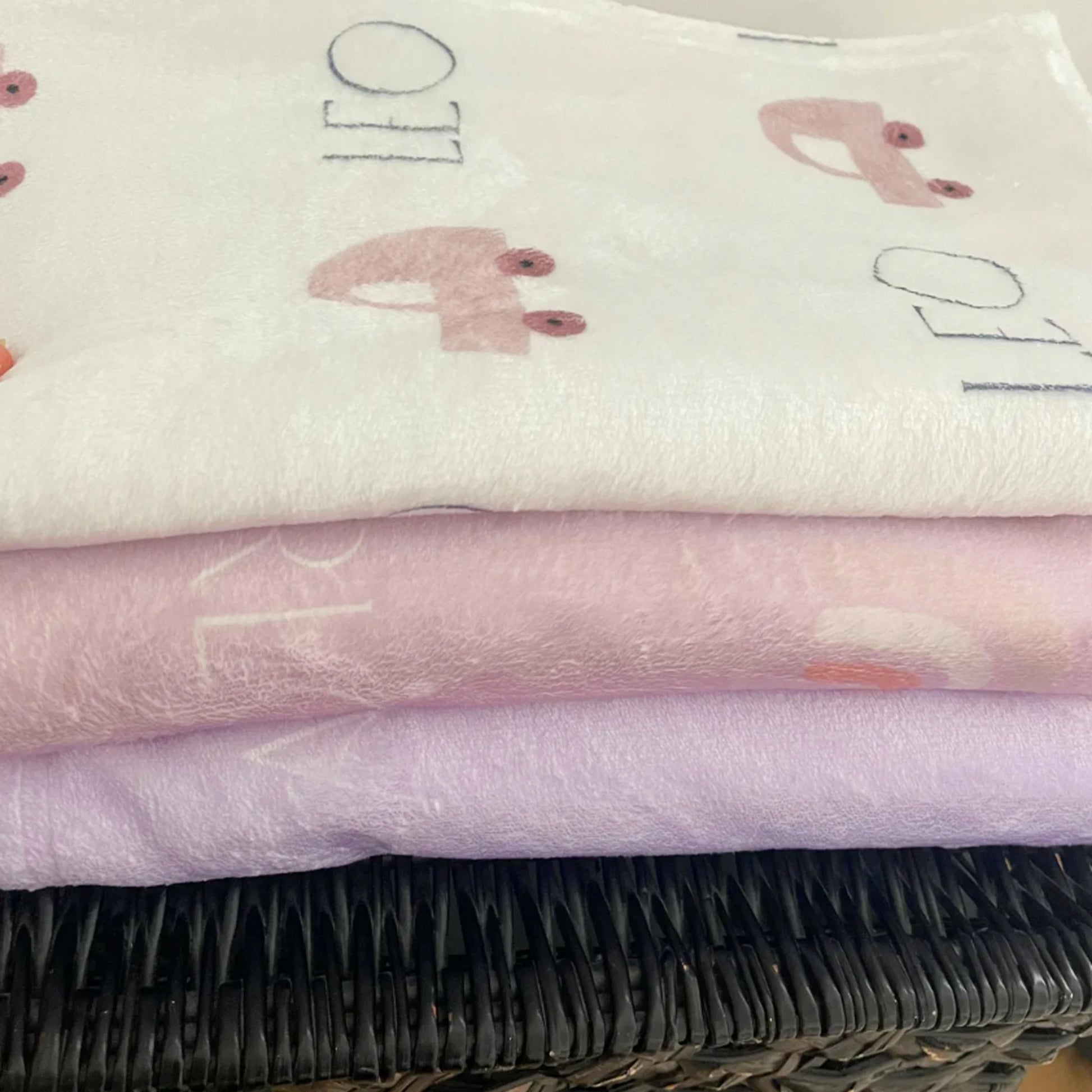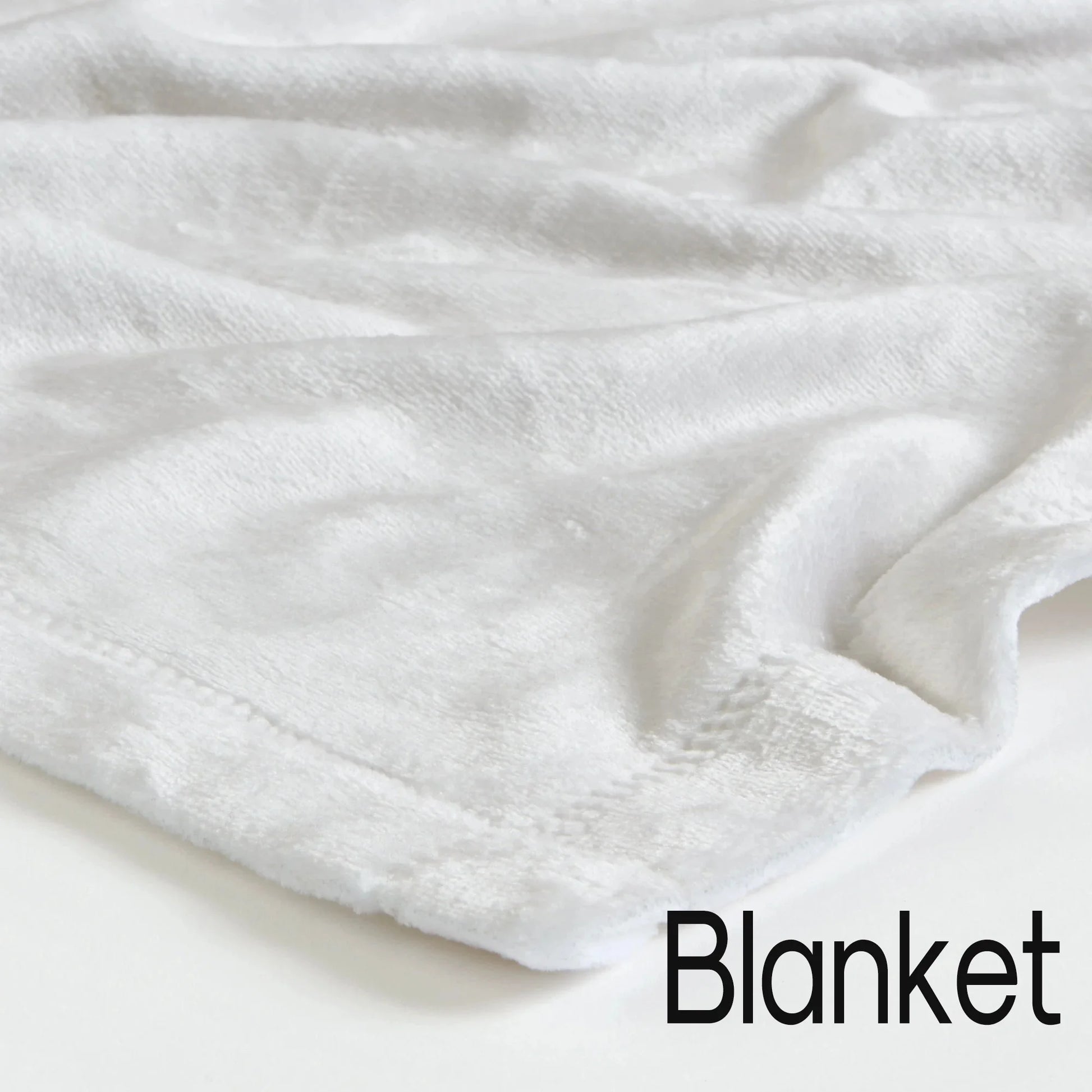 - Baby Blanket: 30"x40" flannel fleece, printed on one side with a soft blank reverse—perfect for snuggling.