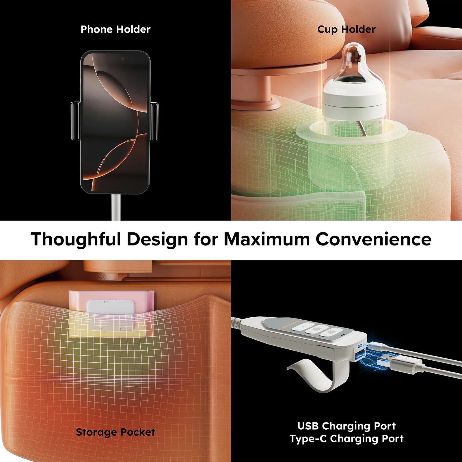 - Storage: Integrated storage space to keep essentials within reach