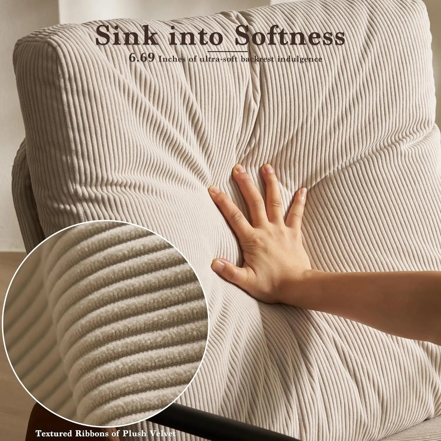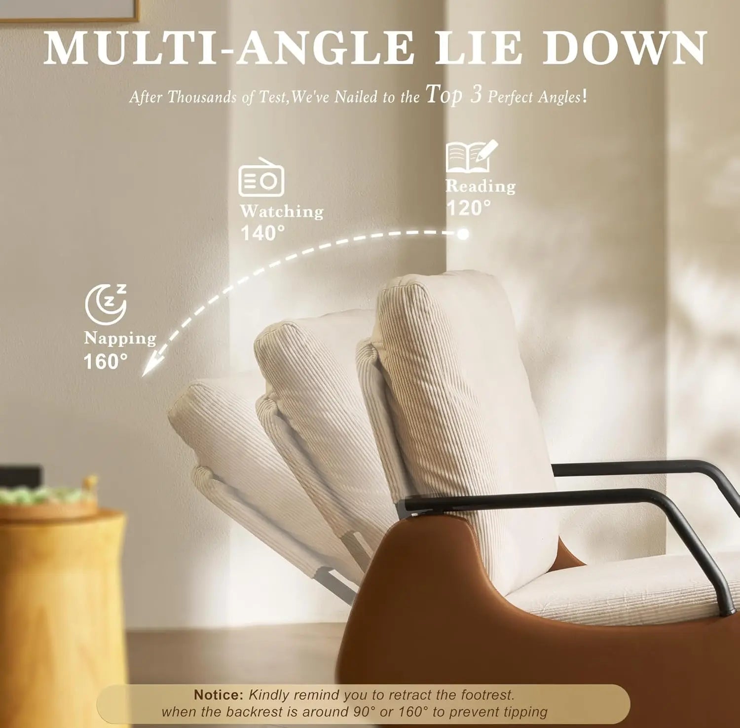 Nursery Rocking Chair with Adjustable Backrest and Footrest Soft Fabric Upholstered Small Glider Rocker Modern Living Room Armchair Bedroom Chair Brown Faux Leather Beige Corduroy