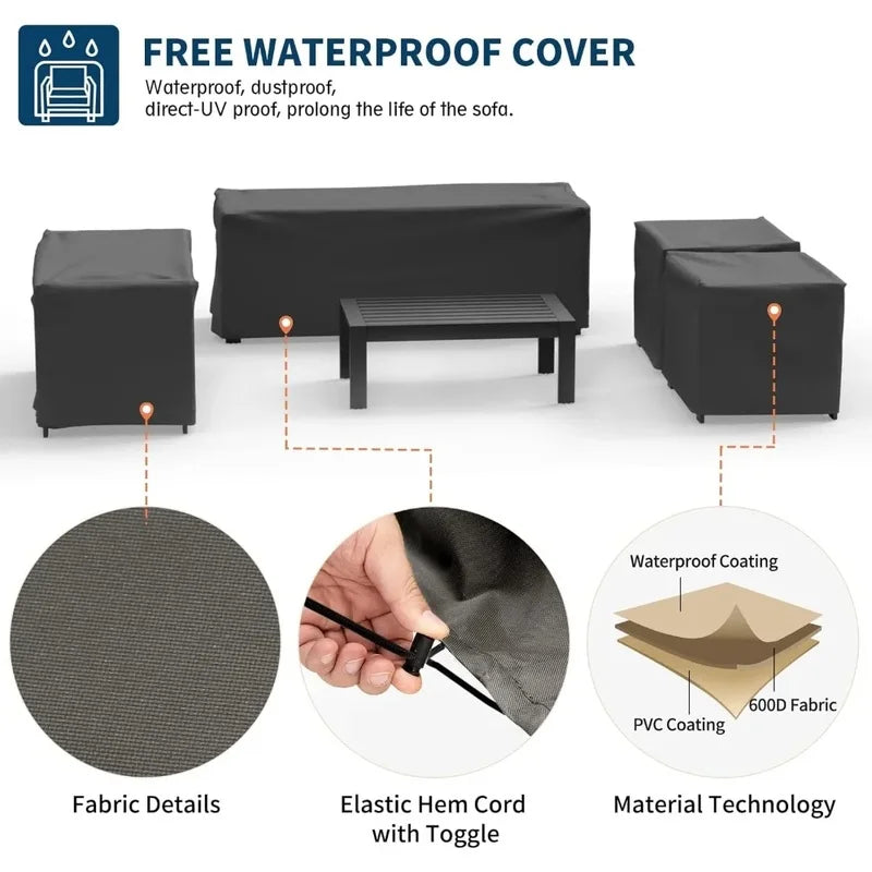 - Durable Aluminum Frame: Built to last, this furniture set is resistant to rust and corrosion, ensuring longevity and low maintenance.