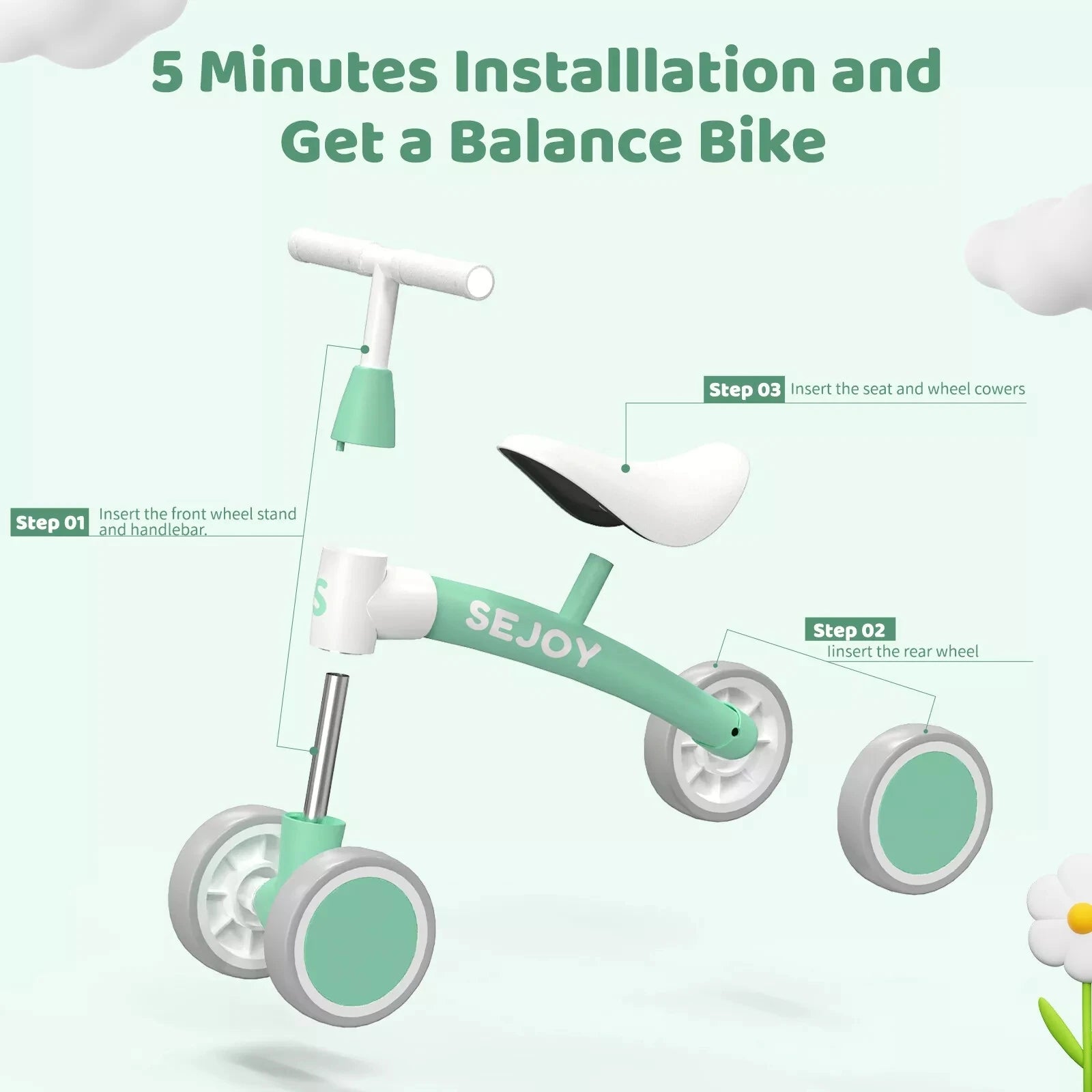 Available in three vibrant colors, this balance bike makes a thoughtful and practical birthday gift for boys and girls alike. Encourage your child's active lifestyle and motor skill development with the SEJOY Baby Balance Bike—the perfect companion for your toddler’s early riding journey.