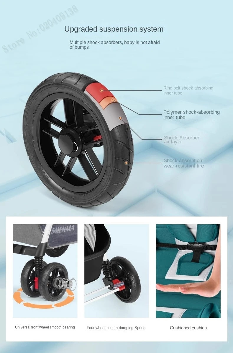 This lightweight double stroller is incredibly easy to handle, featuring four shock-absorbing wheels that provide a stable and comfortable experience on any terrain. Say goodbye to bumpy rides and hello to seamless strolls in the park or busy city streets!